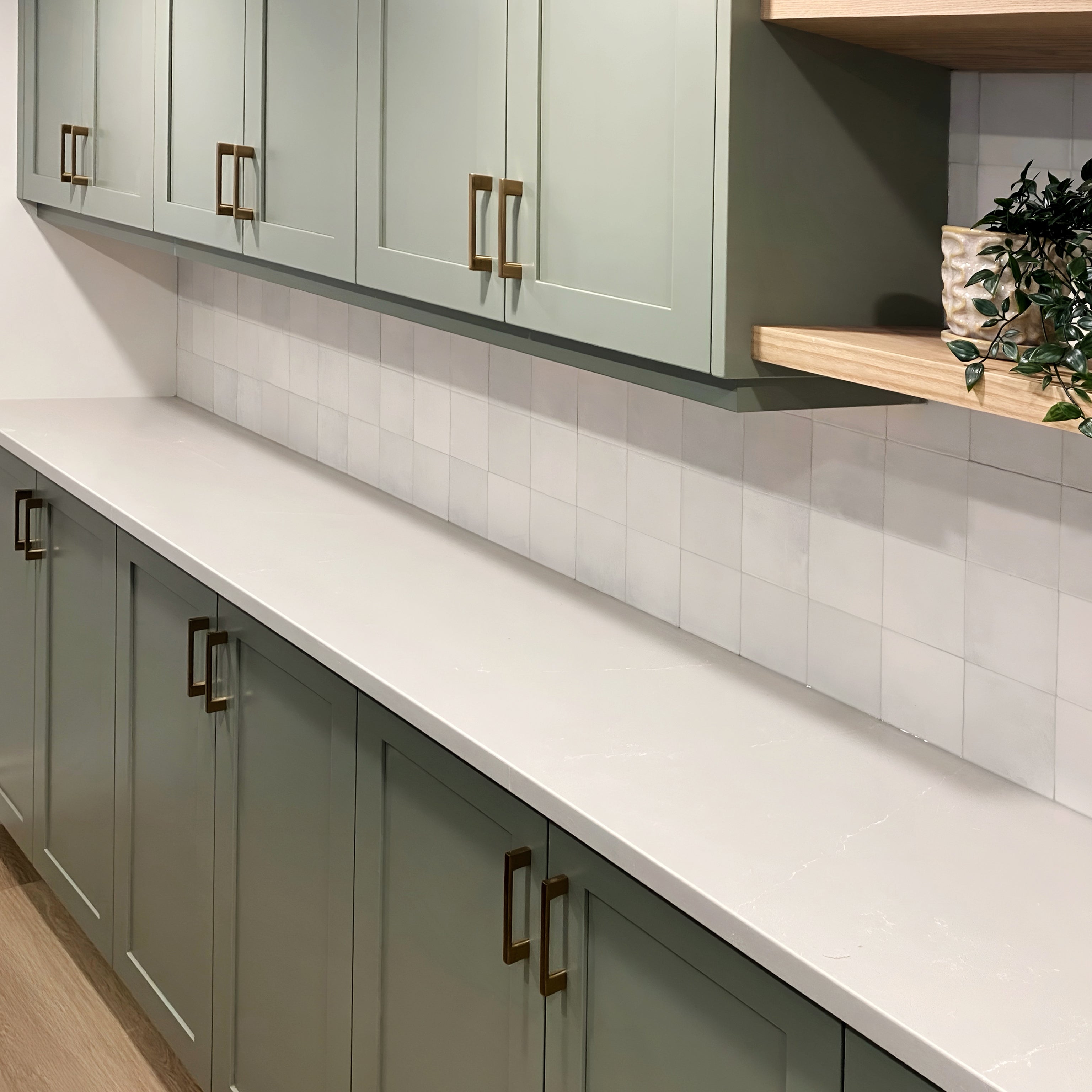 Introducing nature's palette with this earthy green and taupe hue cabinetry.